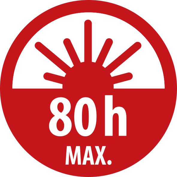 • Leuchtdauer max: 80h (bei 10% Lichtstärke)