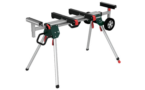Leichtes und robustes Kappsägen-Untergestell mit Trolleyfunktion für den mobilen Einsatz auch mit montierter Säge